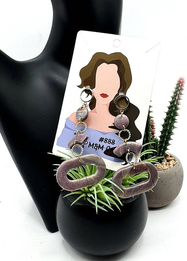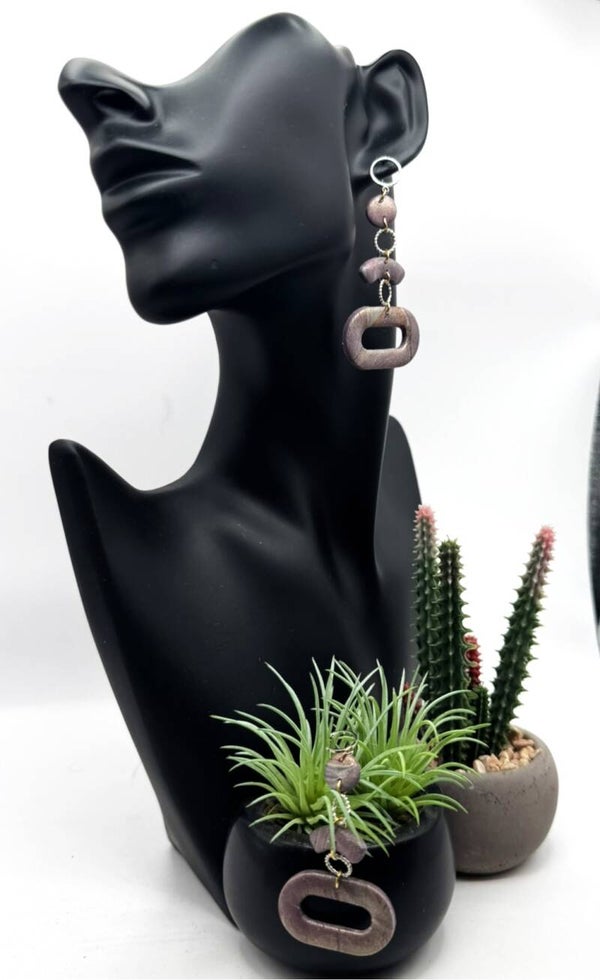 Discover these stunning oblong dangle earrings in a beautiful muted eggplant tone! Crafted from polymer clay and accented with shiny silver-tone hardware, they come to life in different lights, revealing their true charm. The photos can't fully capture their elegance—these earrings are a delightful addition to any collection!