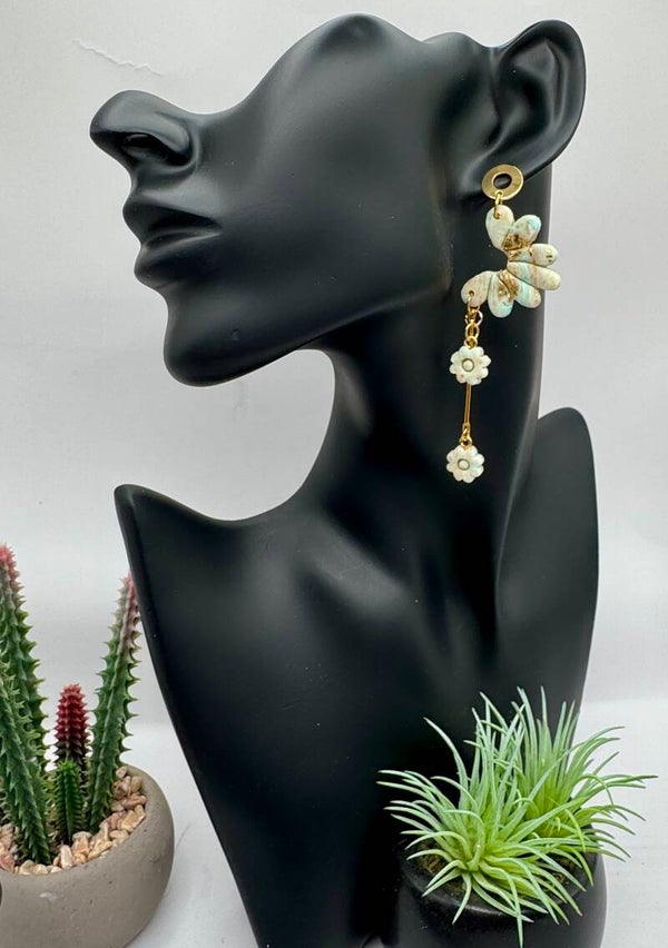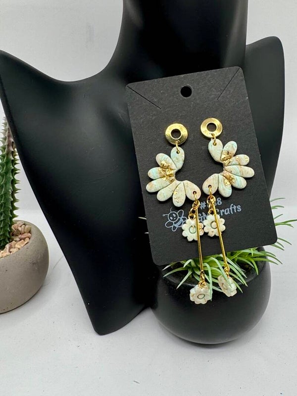 Green & Gold Floral Earrings