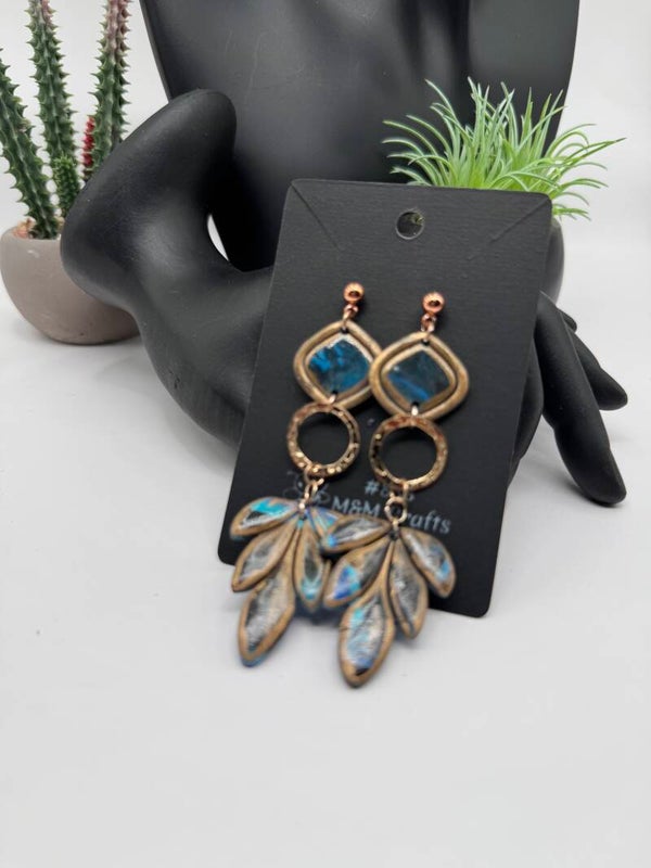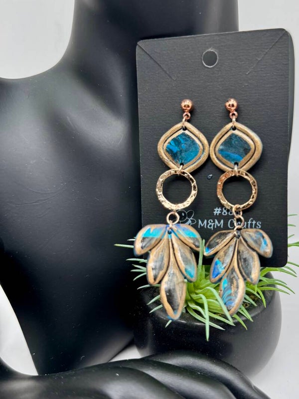 Blue & Gold Leaf Earrings