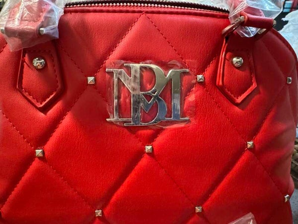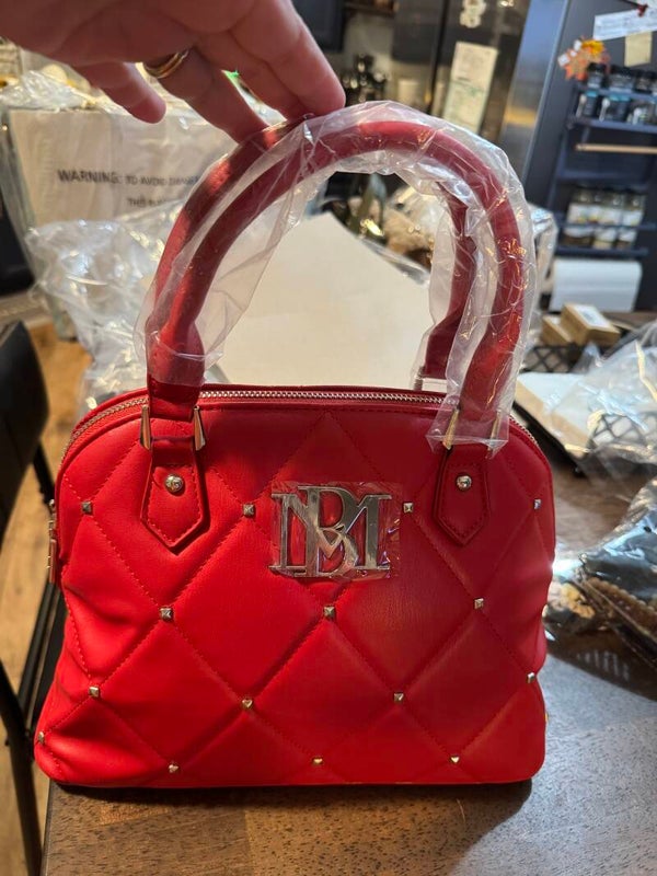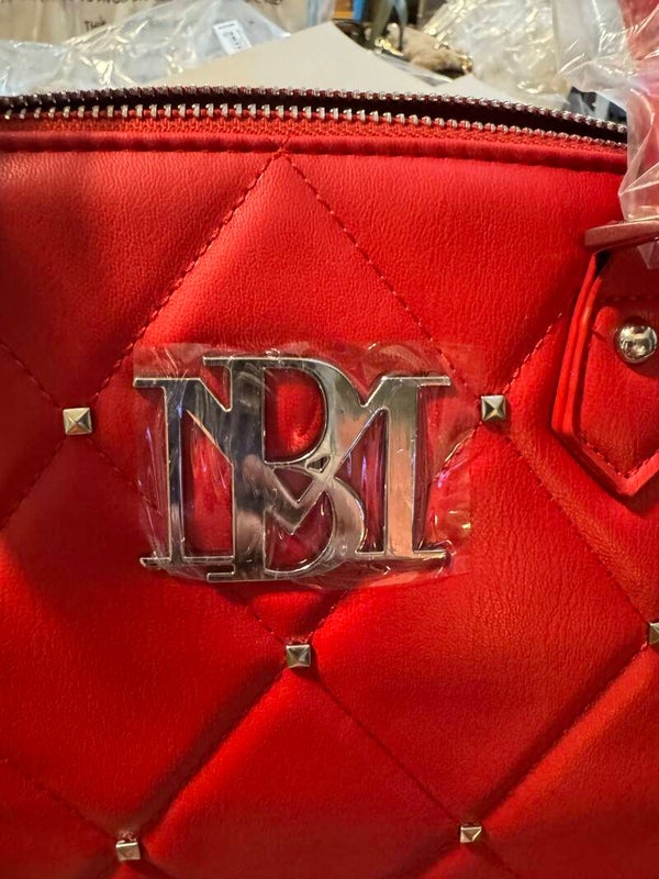 Badgley Mischka Red/Silver Quilted/Studded Bag