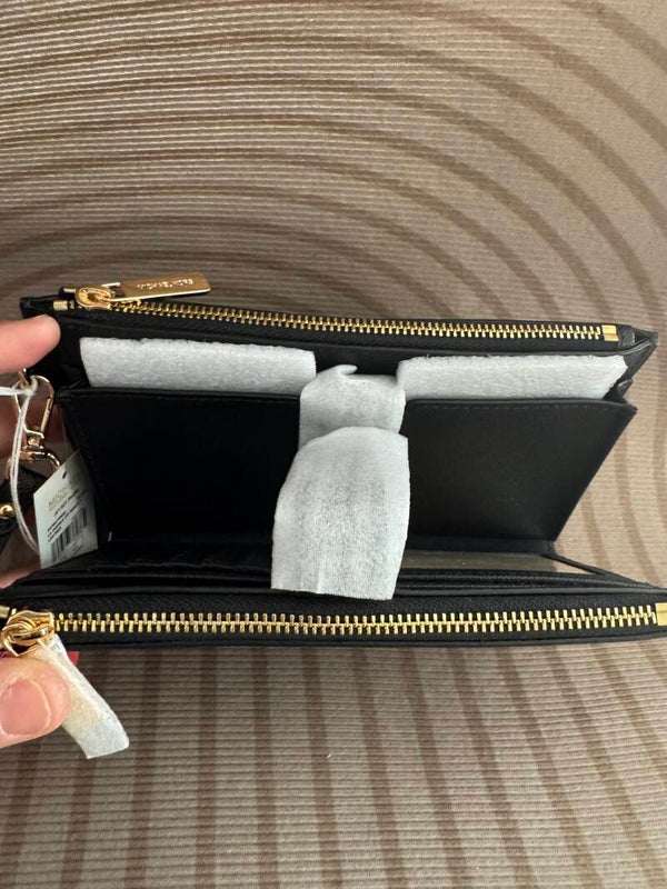 This wristlet from MICHAEL Michael Kors is a must-have accessory for the modern woman on the go. Crafted from durable PVC material, it boasts a compact size, making it easy to carry your essentials without feeling weighed down. The wristlet features two top zip pockets for quick access to your frequently used items, while the spacious interior offers ample storage space. It includes 6 credit card pockets, a window pocket, a phone pocket and 3 slip pockets, ensuring that your cards, cash and other essentials are organized and easily accessible. With its sleek design and functional features, this wristlet is the perfect companion for any occasion.