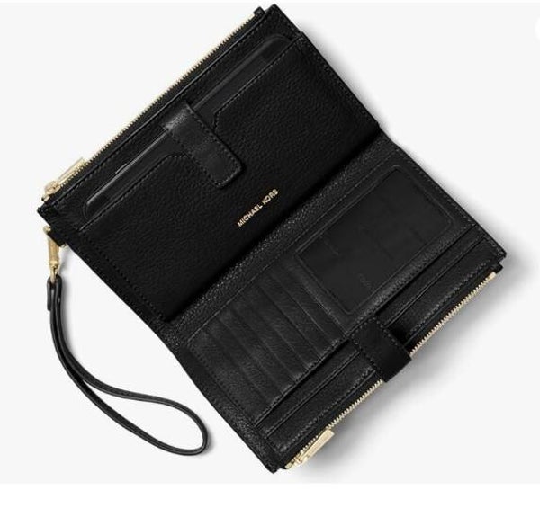 Michael Kors Jet Set Large Double Zip Wallet Wristlet Pebbled Leather Black