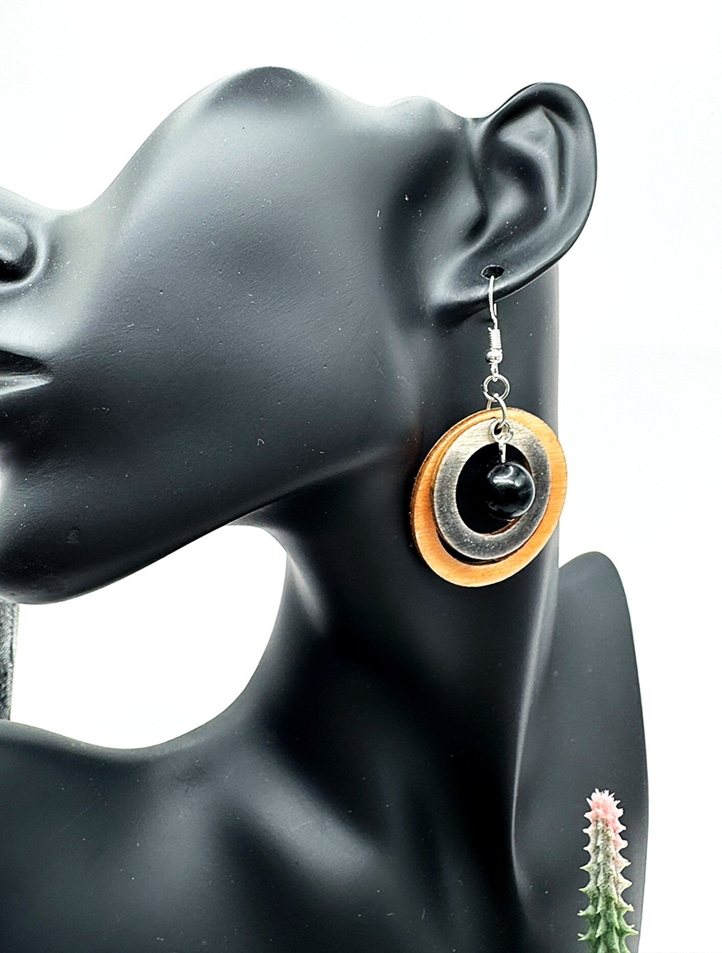 Crafted from beautifully layered wood and shimmering resin, these charming black and caramel earrings feature a stunning black pearl bead at the center. Light and playful, they’re perfect for lifting your spirits and adding a touch of effortless elegance to your day!